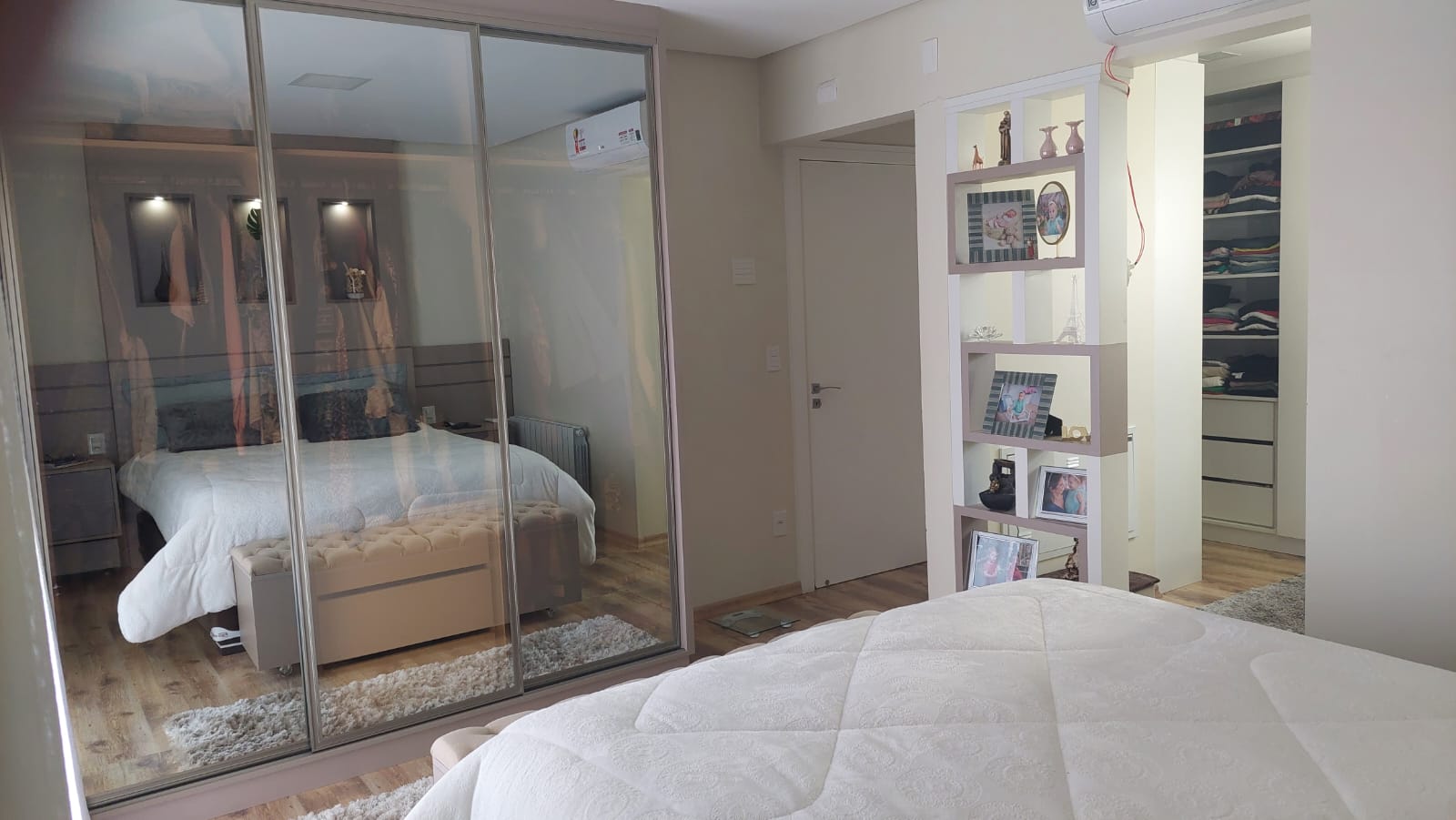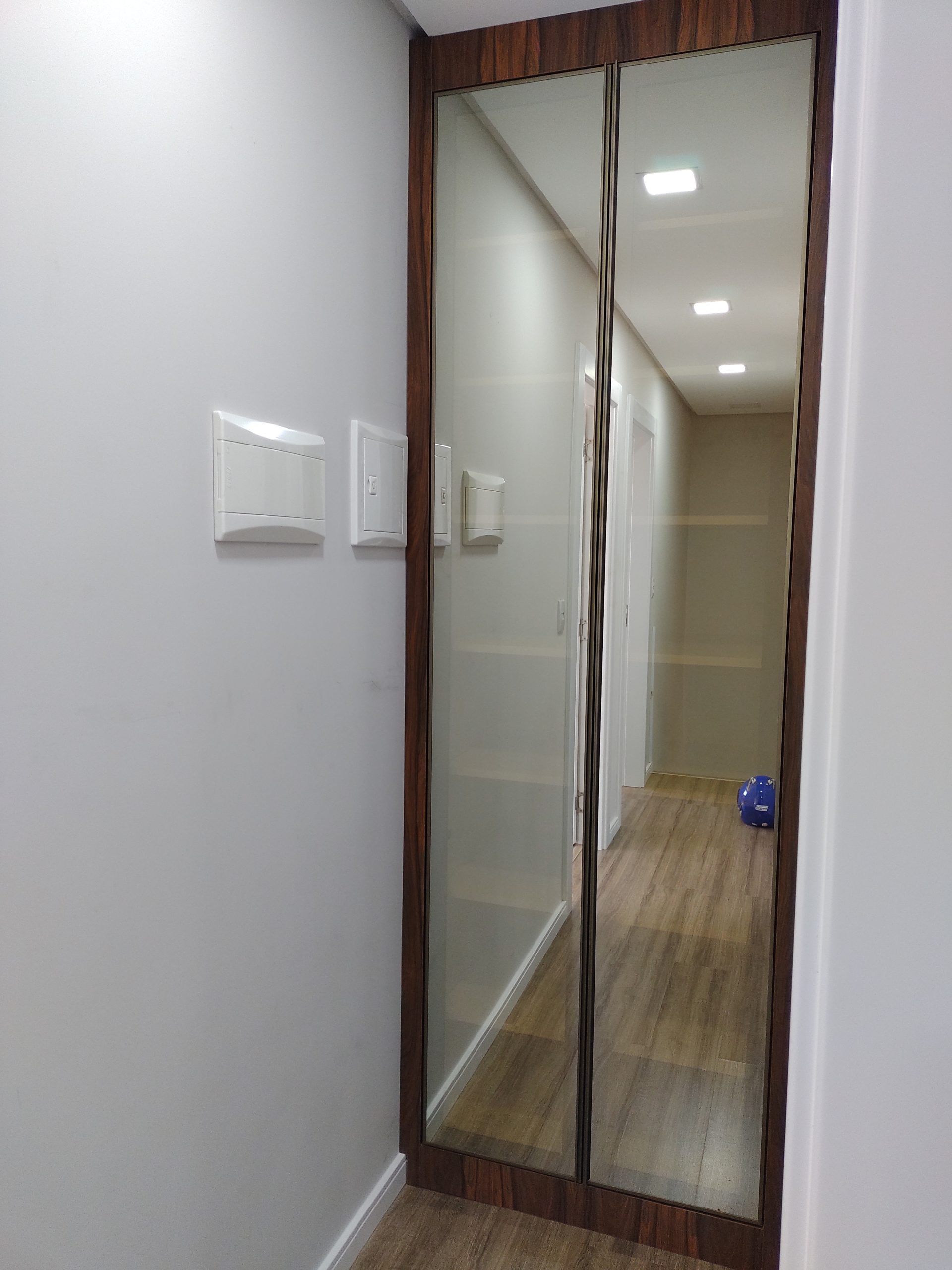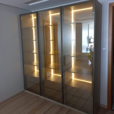 O vidro reflecta é um material cuja superfície possui transparência e capacidade reflexiva. A forma como se enxerga o reflexo ou a parte interna do móvel varia conforme a iluminação utilizada, tanto dentro quanto fora do móvel.